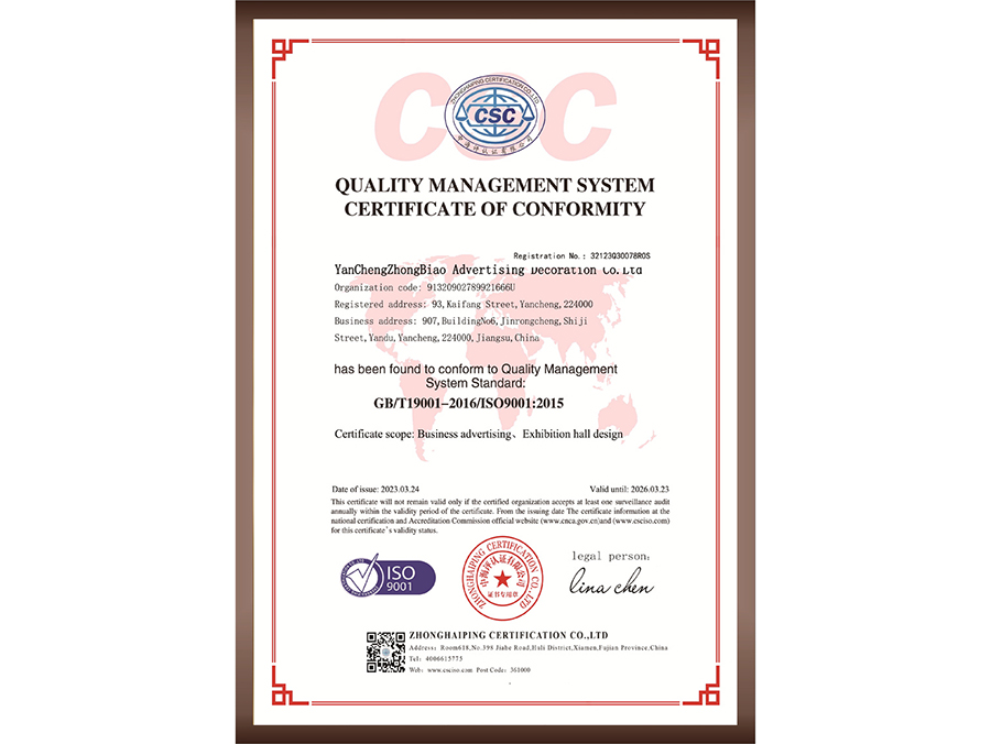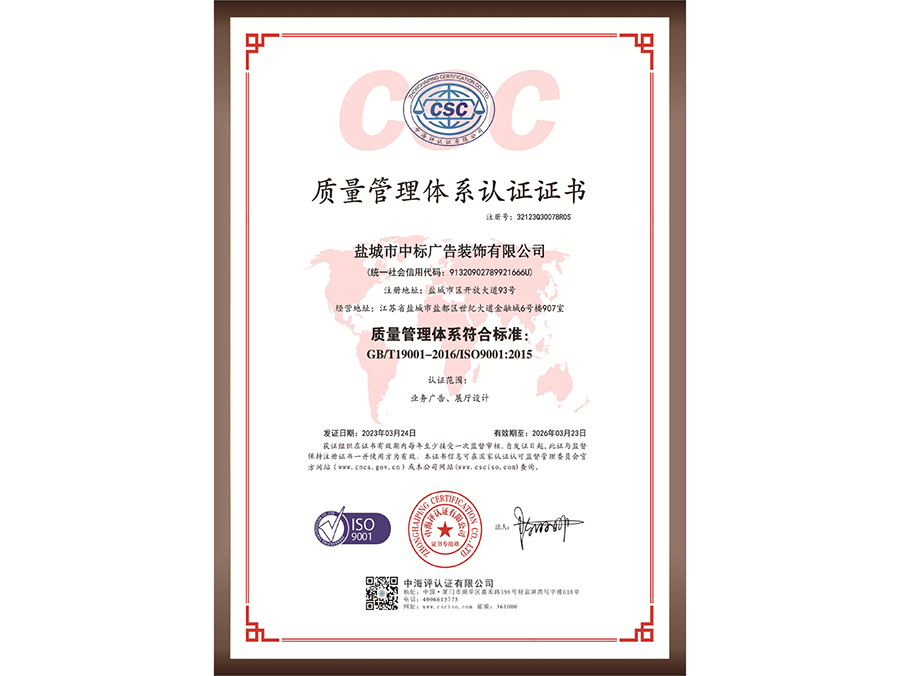 質量管理體系認證證書